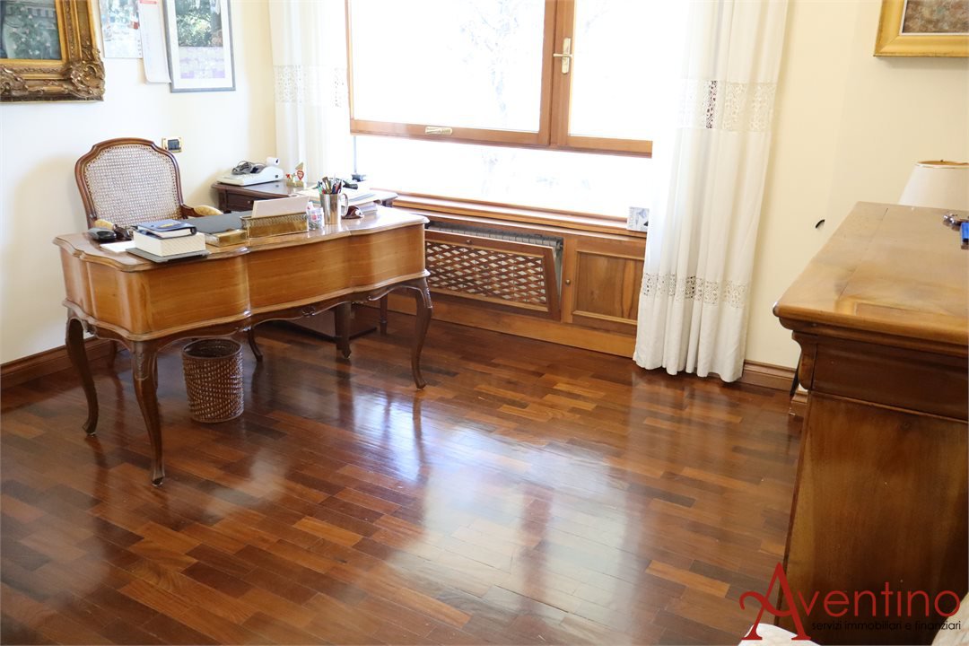 Completano la proprietà un box auto doppio e rifiniture di pregio quali aria condizionata, impianto di allarme, pavimenti in marmo e parquet.